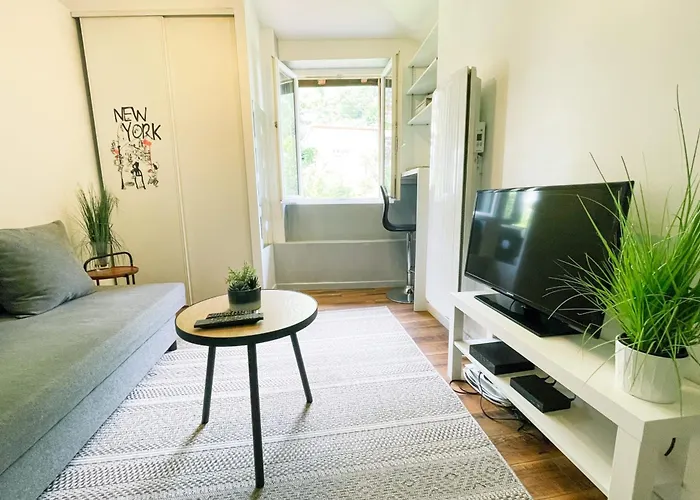 Apartamento Chez Mimi Studio La Tronche Near Hospital #A6, situado a 1 km del Museo de Grenoble, ofrece Wi-Fi tanto para estancias de negocios como de ocio. La Bastilla de Grenoble está a un par de minutos en coche del apartamento de 18 m^2, mientras que La Plagne está a 83 km.